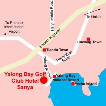 Yalong Bay is located approximately 25 kilometres from Sanya city. The way from Sanya International Airport to Yalong Bay Golf Club Hotel Sanya takes around 40 minutes.